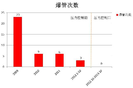 另外,区域压力控制的实施,也降低了该小区爆管的风险。根据供水公司相关部门提供的记录,在2012年10月之前的连续两年内,在该小区发生的爆管事故每年多达6次,而在实施区域压力控制之后至今的1年时间里,还没有发生爆管事故。